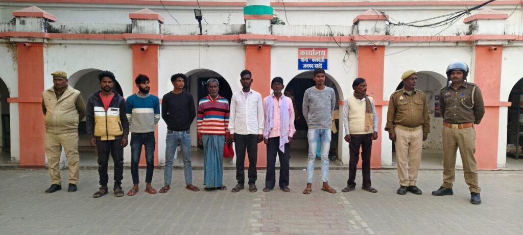 थानाध्यक्ष कलवारी भानु प्रताप सिंह ने बताया कि सचिन पुत्र मुन्नर उम्र 18 वर्ष, शिव पुत्र जोखू उम्र 18 वर्ष भोयर थाना कलवारी, रामफल पुत्र सिद्धू उम्र 48 वर्ष, इंद्रजीत पुत्र रामपाल उम्र 27 वर्ष, संग्राम पुत्र ईश्वरी पासवान उम्र 50 वर्ष तीनों निवासी फूलपुर उच्चवा थाना कलवारी, संदीप यादव पुत्र लाल चंद्र यादव उम्र 20 वर्ष, परशुराम पुत्र राम सुभग यादव तथा बृजेश पुत्र परशुराम तीनों निवासी फूलपुर खालवा थाना कलवारी बस्ती को उपनिरीक्षक हरिप्रकाश त्रिपाठी उपनिरीक्षक रविंद्र सिंह यादव तथा कांस्टेबल के साथ शादियों पर प्रभावी अंकुश लगाए जाने हेतु तथा शांति व्यवस्था कायम रखने हेतु चालान किया गया |