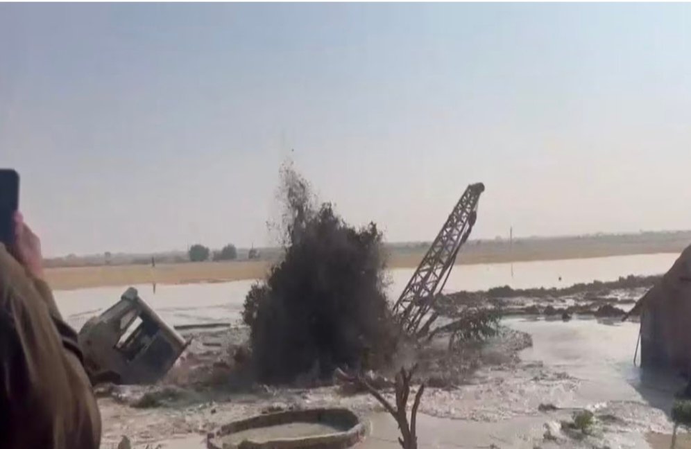 जैसलमेर के मोहनगढ़ नहरी क्षेत्र में शनिवार को एक दुर्लभ भूगर्भीय घटना ने लोगों को दहशत में डाल दिया। ट्यूबवेल की खुदाई के दौरान जमीन अचानक फट गई, जिससे भारी प्रेशर के साथ पानी और गैस का फव्वारा निकलने लगा। इस घटना में खुदाई के लिए इस्तेमाल की जा रही मशीन और एक ट्रक जमीन में धंस गए।