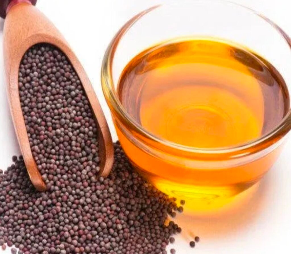 प्लास्टिक की बोतलें और लूज सरसों का तेल।