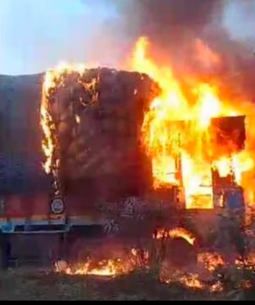अयोध्या-बस्ती फोरलेन पर सोमवार शाम करीब 5:15 बजे एक 12 चक्का ट्रक में अचानक आग लग गई। यह हादसा चौकड़ी टोल प्लाजा से लगभग 100 मीटर पहले हुआ। ट्रक पर बोरियों में सामान लदा था, जो आग की लपटों में घिर गया।
