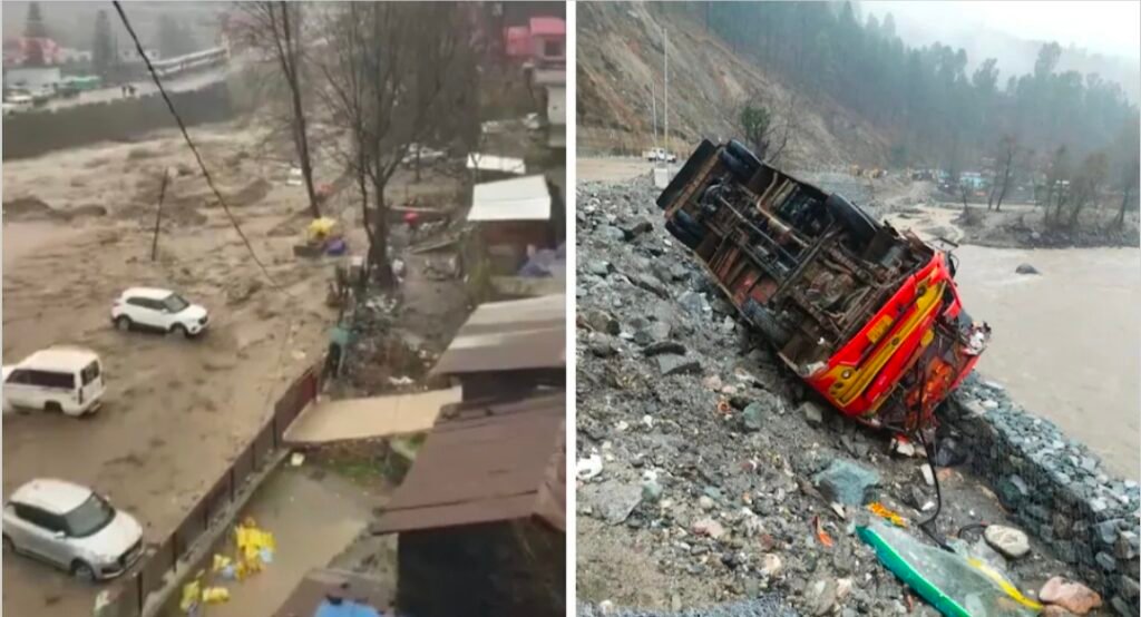 हिमाचल में भारी बारिश का कहर: कुल्लू में गाड़ियां नाले में बहीं, मंडी में लैंडस्लाइड, चंडीगढ़-मनाली हाईवे बंद