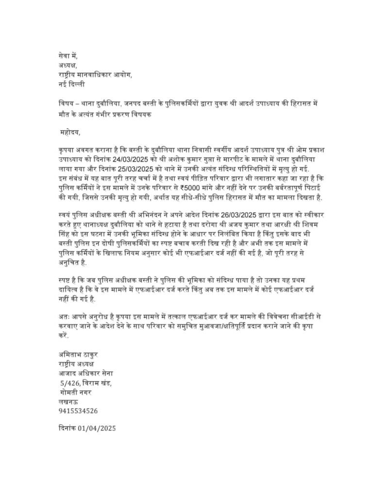 👉वही इस मामले में पूर्व आईपीएस अमिताभ ठाकुर ने अधिकार आयोग को पत्र लिखकर पुलिस के खिलाफ एफआईआर दर्ज करने विवेचना सीआईडी से करवाने की मांग की है |