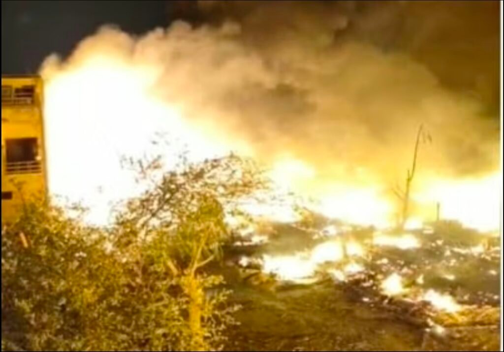 झोपड़ियों में रखे घरेलू सिलेंडर और पार्क की गई बाइकों के पेट्रोल टैंक जैसे-जैसे फटते गए, धमाकों की आवाज से क्षेत्र थर्रा उठा। आग की लपटें आसमान तक पहुंच रही थीं और दूर-दूर तक धुआं फैल गया।