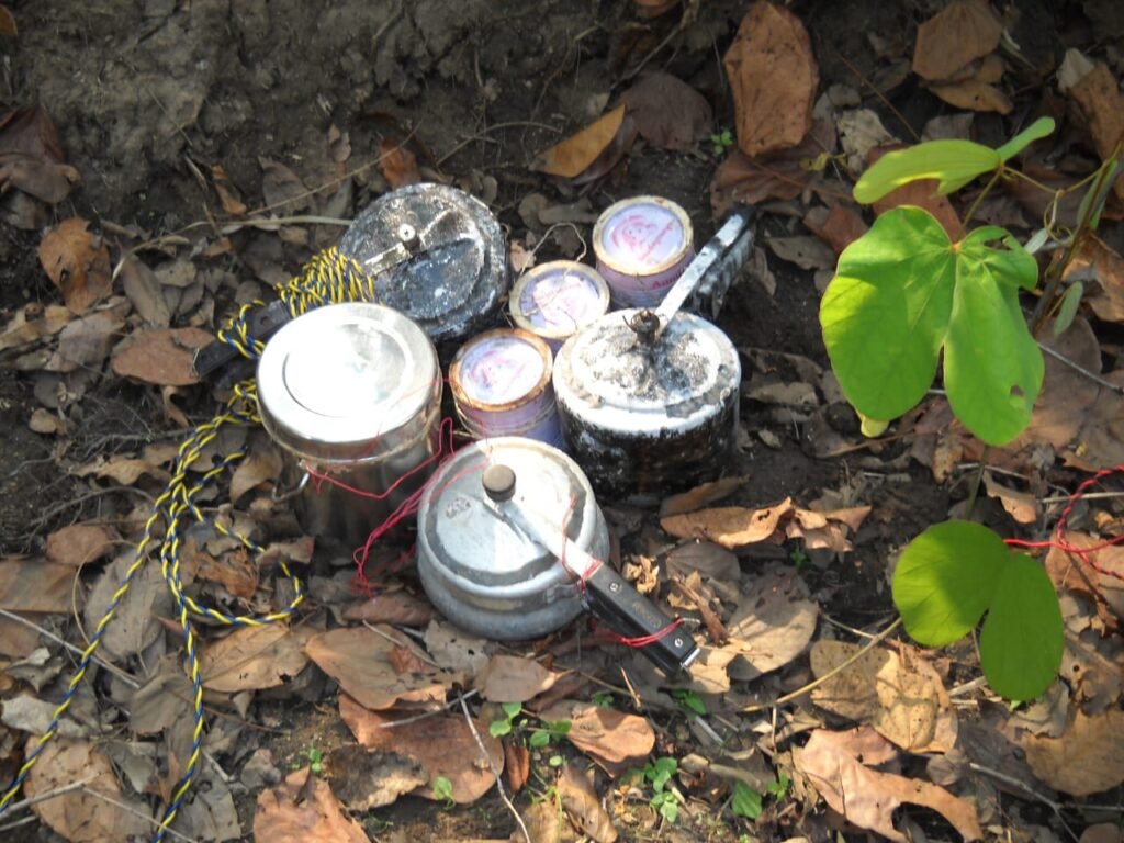 टीम ने सर्चिंग के दौरान 03 नग कुकर बम, 02 नग पाइप बम, 01 नग टिफिन बम, 01 नग वॉकी-टॉकी, दवाइयां, राशन, बर्तन समेत अन्य सामग्री बरामद की। बीडीएस (बम निरोधक दस्ता) टीम द्वारा मौके पर डंप किए गए बमों को सुरक्षित रूप से डिफ्यूज कर दिया गया, जिससे नक्सलियों के किसी भी संभावित हमले की साजिश को नाकाम कर दिया गया।