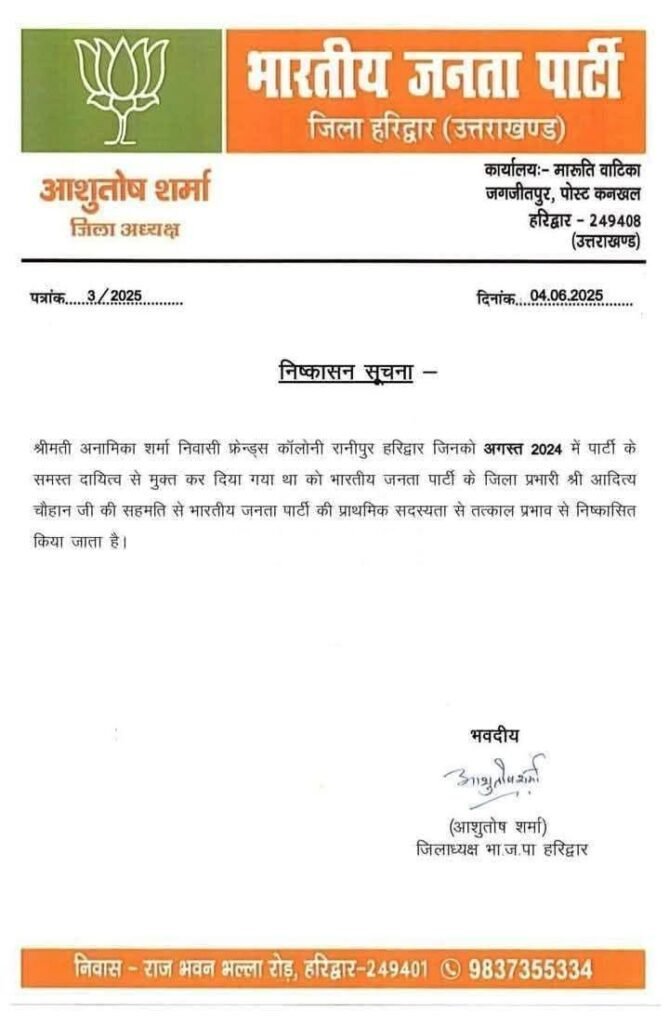 - भाजपा से निष्कासन