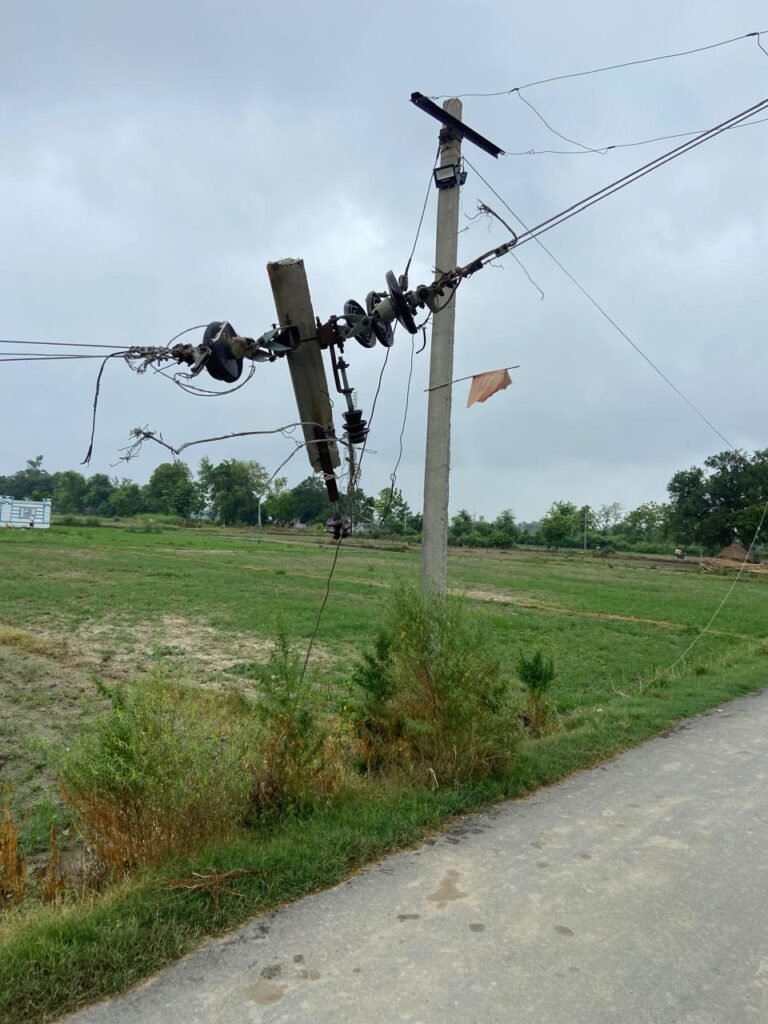 बस्ती के नगर बाजार में बिजली व्यवस्था बदहाल, 11000 वोल्ट की लाइन का पोल टूटकर लटका, जान जोखिम में