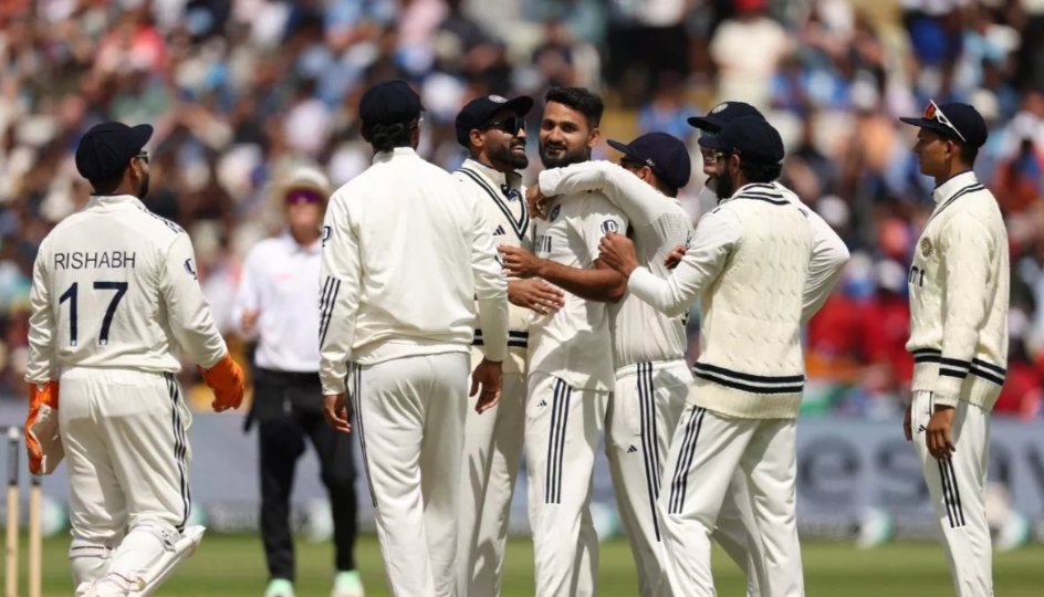 मैच के अंतिम दिन बारिश की रुकावट के बावजूद भारतीय गेंदबाजों ने अनुशासित प्रदर्शन किया। युवा तेज़ गेंदबाज़ आकाशदीप ने शानदार गेंदबाजी करते हुए दूसरी पारी में छह विकेट चटकाए और इंग्लैंड की कमर तोड़ दी। उन्होंने ओली पोप (24), हैरी ब्रूक (23), जेमी स्मिथ (88), और बायडर्न कार्स समेत अहम विकेट झटके।
