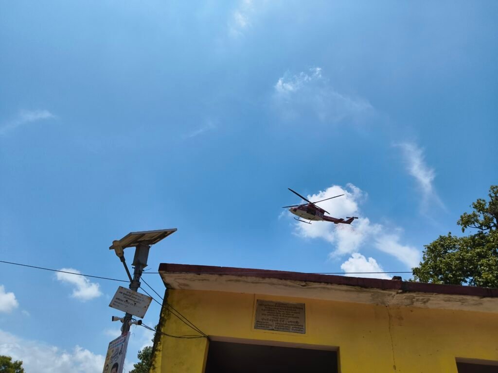 आज दोपहर करीब 1:00 बजे, बस्ती सदर तहसील क्षेत्र में स्थित प्राचीन भदेश्वरनाथ मंदिर पर श्रद्धा का दृश्य तब और पावन हो गया जब लाल रंग का हेलीकॉप्टर मंदिर के ऊपर मँडराने लगा और आकाश से फूलों की वर्षा होने लगी।