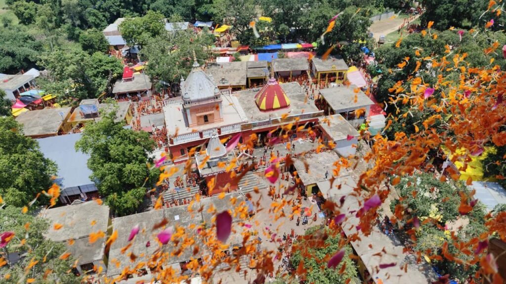 जैसे ही हेलीकॉप्टर ने मंदिर के ऊपर चक्कर लगाना शुरू किया, वैसे ही नीचे मौजूद हजारों श्रद्धालुओं और कांवरियों में उल्लास की लहर दौड़ गई।
