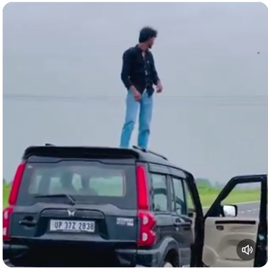 हापुड़ हाईवे पर काले रंग की स्कॉर्पियो (UP-37 Z2838) से एक युवक का खतरनाक स्टंट करने का वीडियो सामने आया है। सड़क पर दौड़ रही गाड़ी से युवक अचानक ड्राइविंग सीट से बाहर निकलता है, पहले बोनट पर बैठता है, फिर खड़ा हो जाता है और आखिर में गाड़ी की छत पर चढ़कर स्टंट करने लगता है।