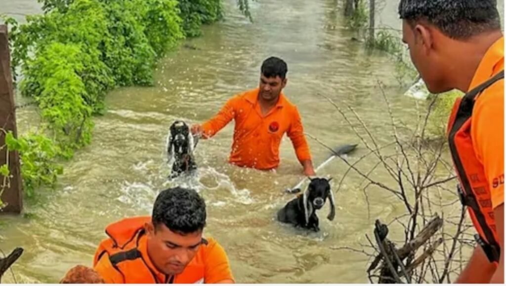 नदियां उफान पर, गांव कटे – लोग फंसे