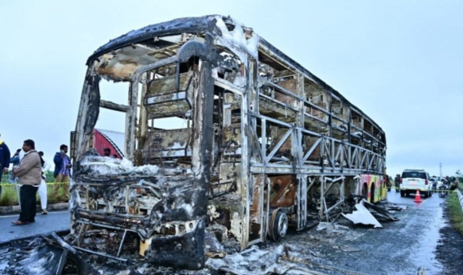 हैदराबाद-बेंगलुरु हाईवे पर दर्दनाक हादसा: बस में लगी आग से 20 की मौत, कई झुलसे