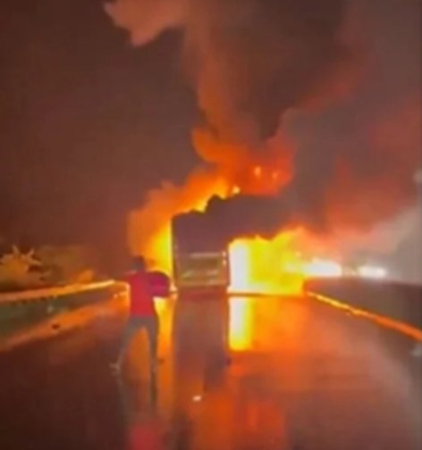 👉 बाइक से टक्कर के बाद बस में लगी भीषण आग..