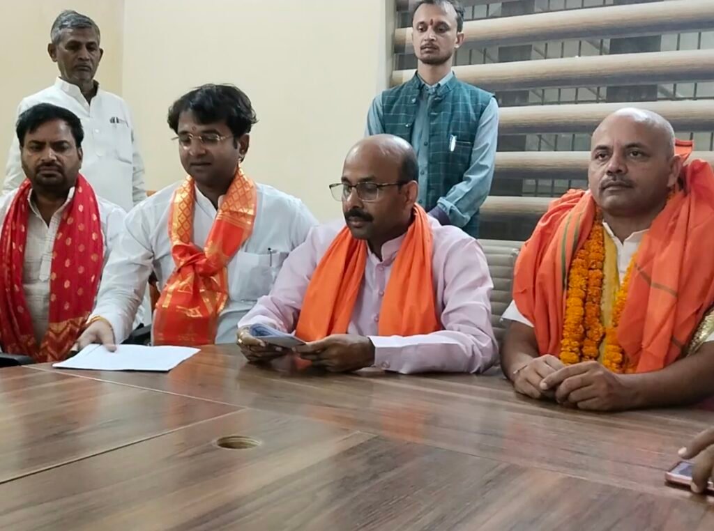 प्रेस वार्ता के दौरान चंद्रमणि पांडे उर्फ सुदामा, राणा दिनेश प्रताप सिंह, कृष्ण चंद्र सिंह, भाजपा जिला अध्यक्ष विवेकानंद मिश्र