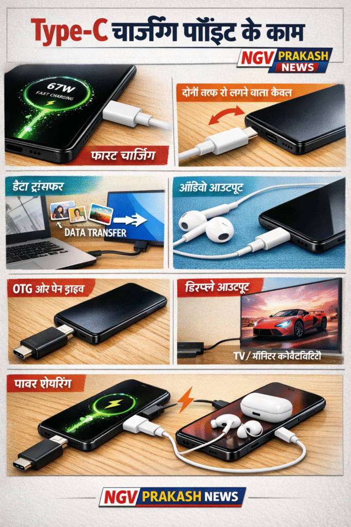 मोबाइल में Type-C चार्जिंग पॉइंट सिर्फ चार्ज लगाने के लिए नहीं होता, बल्कि इसके कई ज़रूरी काम होते हैं। आसान भाषा में समझिए 👇