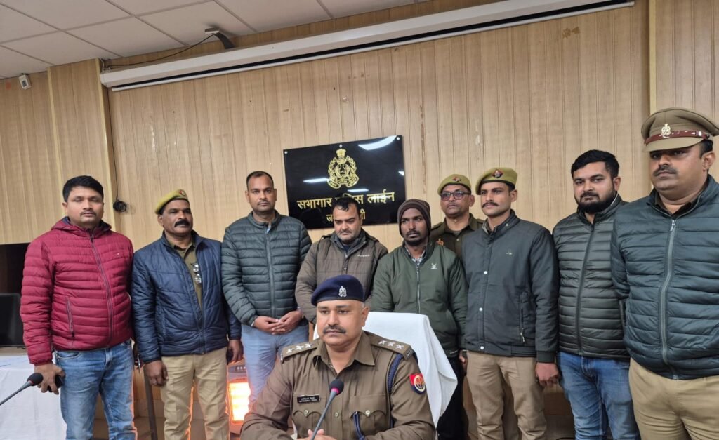 घटना के बारे में जानकारी देते हुए क्षेत्राधिकारी सदर सतेंद्र भूषण त्रिपाठी पुलिस टीम और आरोपी के साथ..