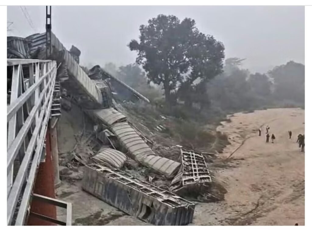 प्राप्त जानकारी के अनुसार बिहार के जमुई जिले में रविवार देर रात एक बड़ा रेल हादसा हो गया, जब सीमेंट से लदी एक मालगाड़ी के कई डिब्बे पटरी से उतर गए और उनमें से लगभग 10 डिब्बे पुल से नीचे बरुआ नदी की ओर जा गिरे। यह हादसा झाझा–जसीडीह रेलखंड पर सिमुलतला से सटे टेलवा हॉल्ट के पास बरुआ नदी पुल पर रात करीब साढ़े 11 बजे हुआ। हादसे में कुल 19 डिब्बों के बेपटरी होने की सूचना है, जिससे इस व्यस्त रेलखंड पर अप और डाउन दोनों लाइन का संचालन पूरी तरह बाधित हो गया है।