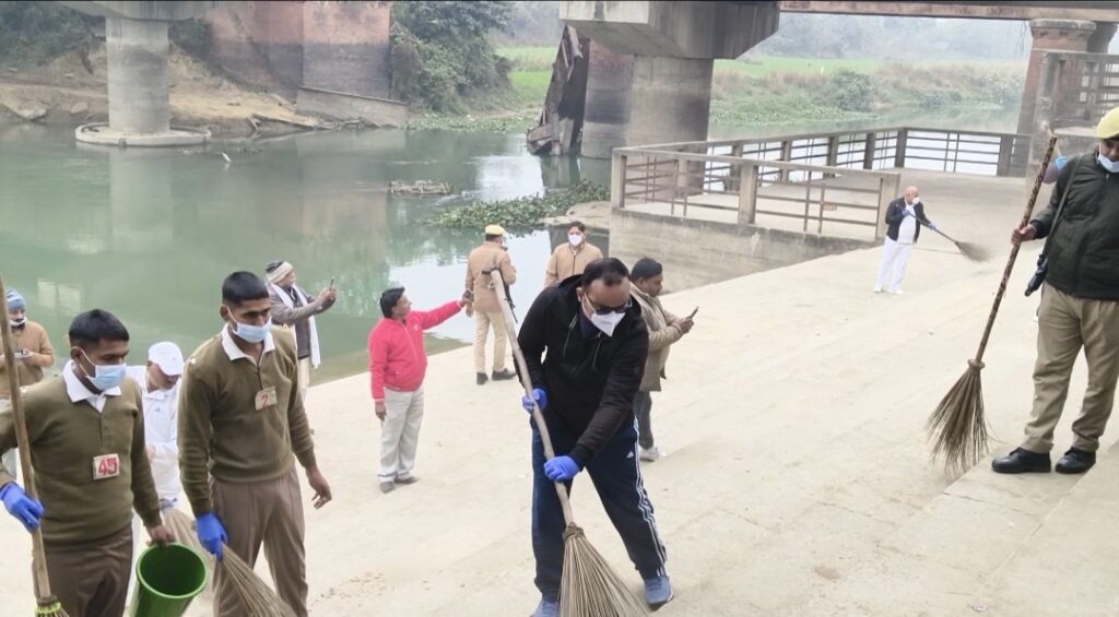 स्वच्छ भारत मिशन के तहत अमहट घाट पर चला स्वच्छता अभियान, पुलिस और प्रशासन ने मिलकर की सफाई