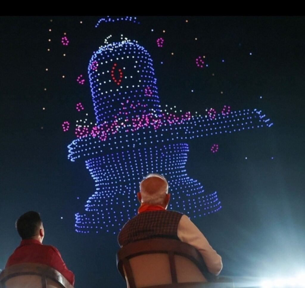 प्रधानमंत्री मोदी ने मंदिर में ओंकार नाद का सामूहिक उच्चार किया और बाद में आयोजित भव्य ड्रोन शो का अवलोकन किया। इस शो में लगभग 3000 ड्रोन की मदद से आकाश में धार्मिक और सांस्कृतिक प्रतीकों की आकृतियां उकेरी गईं, जिसने वहां मौजूद श्रद्धालुओं और दर्शकों को मंत्रमुग्ध कर दिया।