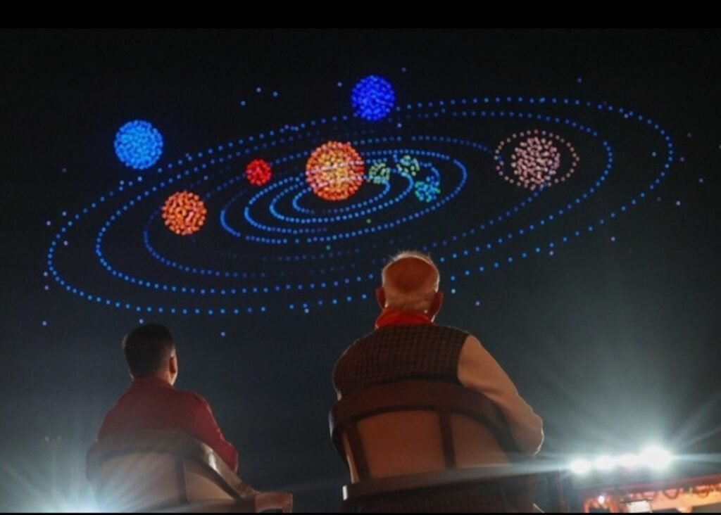 ड्रोन शो के दौरान आसमान में भगवान शिव के त्रिशूल और डमरू की आकृति बनाई गई। इसके बाद सोमनाथ मंदिर, शिवलिंग और ब्रह्मांड की संरचना को भी ड्रोन के माध्यम से प्रदर्शित किया गया, जिससे आस्था और आधुनिक तकनीक का अद्भुत समन्वय देखने को मिला।