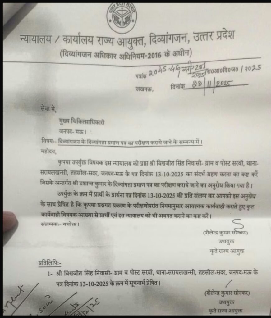 मामले की गंभीरता को देखते हुए मुख्य चिकित्सा अधिकारी मऊ की ओर से जांच शुरू कर दी गई है। डॉ. विश्वजीत सिंह ने प्रशांत कुमार सिंह के खिलाफ फर्जी दिव्यांग प्रमाण पत्र के आधार पर नौकरी पाने को लेकर औपचारिक शिकायत भी दर्ज करा दी है। इस्तीफे के बाद सामने आए इन आरोपों से मामला और गंभीर हो गया है। अब मेडिकल बोर्ड की रिपोर्ट और प्रशासनिक जांच के नतीजों पर सभी की नजरें टिकी हुई हैं।