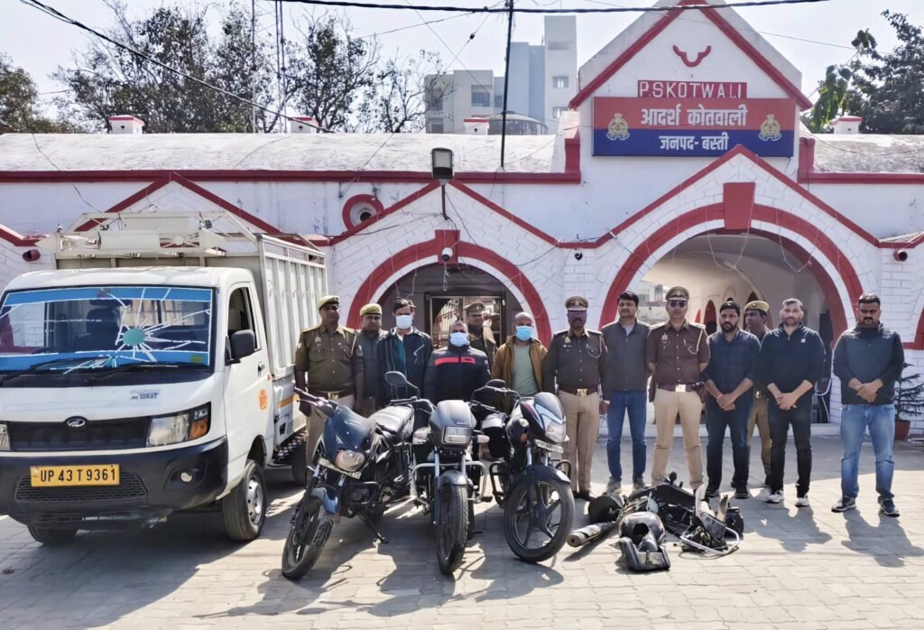 थाना कोतवाली, थाना वाल्टरगंज और स्वाट टीम बस्ती की संयुक्त कार्रवाई में वाहन चोरी के एक गिरोह का पर्दाफाश करते हुए तीन अभियुक्तों को गिरफ्तार किया गया है। पुलिस ने उनके कब्जे से एक चोरी की पिकअप, तीन चोरी की मोटरसाइकिल और एक मोटरसाइकिल के खुले हुए पुर्जे बरामद किए हैं।