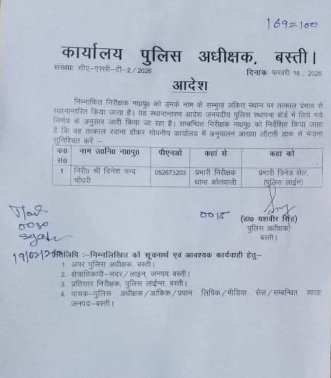 खाकी की मर्यादा पर सख्त संदेश: कार्य में लापरवाही और महिला कांस्टेबल प्रकरण में बस्ती कोतवाल लाइन हाजिर, एसपी यशवीर सिंह की त्वरित कार्रवाई