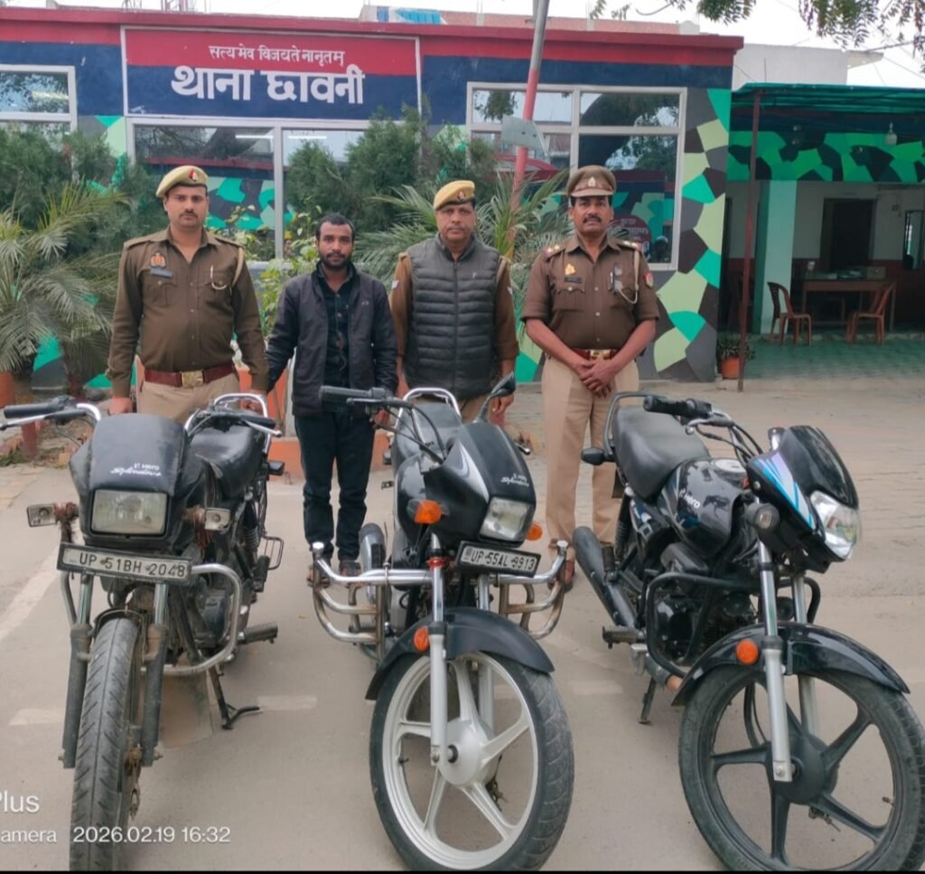 पुलिस के अनुसार 1 नवंबर 2025 को रामजानकी तिराहा के पास से एक स्प्लेंडर प्लस मोटरसाइकिल चोरी होने के संबंध में थाना छावनी में मुकदमा दर्ज किया गया था। इसी मामले में वांछित आरोपी की तलाश में पुलिस टीम रामजानकी तिराहा क्षेत्र में गश्त कर रही थी। मुखबिर की सूचना पर थाना छावनी पुलिस, एसओजी और स्वाट,सर्विलांस टीम ने संयुक्त कार्रवाई करते हुए अमोढ़ा क्षेत्र में रहमतुल्ला के बंद मुर्गी फार्म के पास से विशाल सोनी को गिरफ्तार कर लिया।