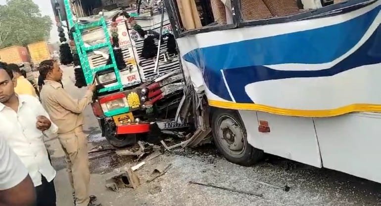 प्राइवेट बस और ट्रक में हुआ भीषण टक्कर