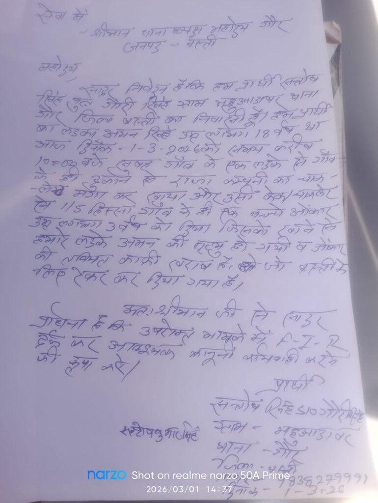 प्राप्त जानकारी के अनुसार महुआ डाबर निवासी संतोष कुमार सिंह का पुत्र अमन सिंह (18 वर्ष) गांव की एक दुकान से केक खरीदकर लाया था। परिजनों का कहना है कि केक खाने के कुछ ही देर बाद अमन की तबीयत अचानक बिगड़ गई। परिजन उसे तत्काल सामुदायिक स्वास्थ्य केंद्र गौर ले गए, जहां प्राथमिक उपचार के बाद हालत गंभीर होने पर चिकित्सकों ने जिला अस्पताल बस्ती रेफर कर दिया। परिजन उसे लेकर जा रहे थे, लेकिन रास्ते में ही अमन ने दम तोड़ दिया।