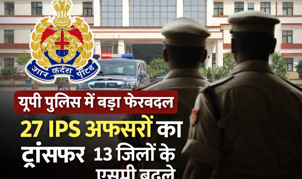 यूपी पुलिस में बड़ा फेरबदल, 27 आईपीएस अधिकारियों का तबादला, 13 जिलों के एसपी बदले