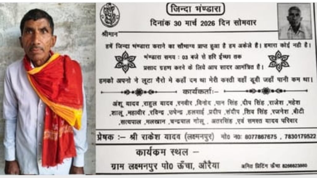 📍राकेश यादव ने एक ऐसा फैसला लिया है, जो सुनने में अजीब जरूर लगता है, लेकिन उसके पीछे छिपा दर्द बहुत गहरा है। उन्होंने तय किया है कि वह जीते जी अपनी ही तेरहवीं का भोज कराएंगे। सोमवार को इसके लिए गांव-गांव करीब 1900 लोगों को निमंत्रण भेजा गया है, ताकि लोग आएं, खाना खाएं और उनके जीवन के इस अनोखे लेकिन भावुक क्षण के गवाह बनें।