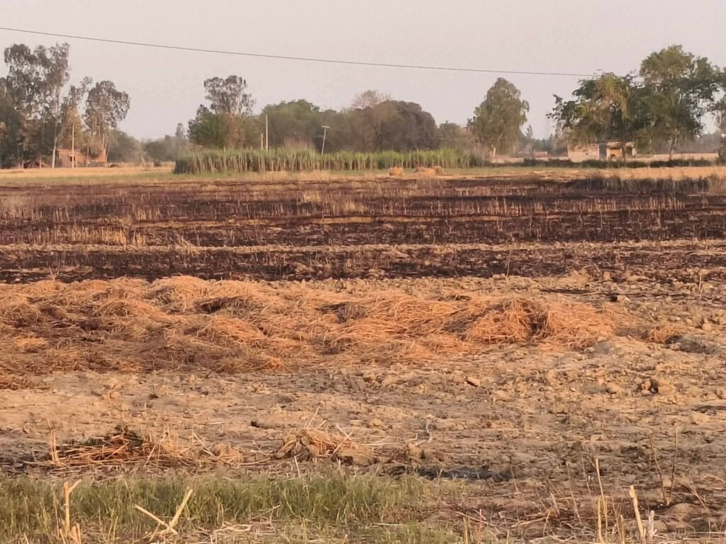 कंबाइन मशीन की चिंगारी से 80 बीघा गेहूं की फसल जलकर राख, 21 किसान परिवार प्रभावित