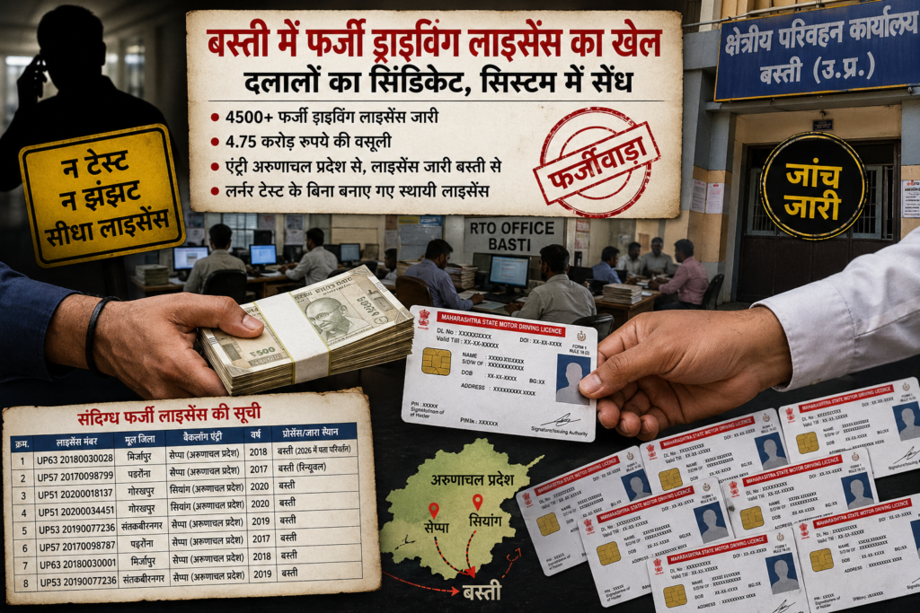 बस्ती में ‘DL घोटाला’—नंबरों के खेल में करोड़ों की कमाई, फर्जी लाइसेंस का पूरा हिसाब-किताब सामने