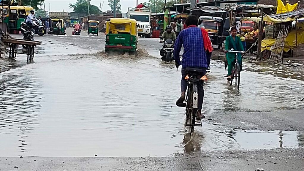 जरा सी बारिश में तालाब बन गया कलवारी चौराहा