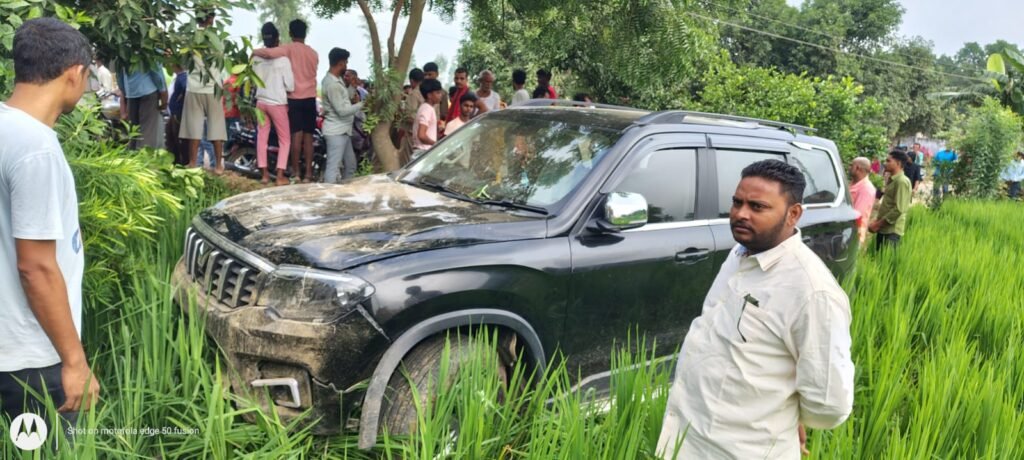 तेज रफ्तार स्कार्पियो अनियंत्रित होकर धान के खेत में जा घुसी
