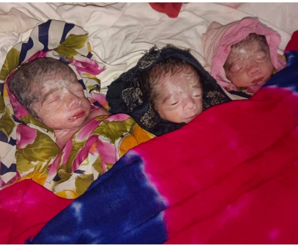 परिजनों के निवेदन पर महिला का सामान्य प्रसव कराया गया। तीनों बेटे स्वस्थ्य थे। दो नवजात शिशु का वचन कम होने के चलते महिला चिकित्सालय रेफर कर दिया गया।