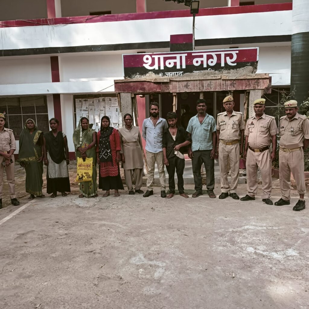 थानाध्यक्ष नगर देवेंद्र सिंह ने बताया कि राजन पुत्र अनिल मिश्रा, मनीष पुत्र अनिल कुमार, विमल कुमार पुत्र स्वर्गीय रामनरेश सभी निवासी ग्राम खजुरिया मिश्र थाना नगर बस्ती व रिचा पत्नी रामकरण, सोनिया पत्नी यशवंत, संगीता पत्नी अशरफी तथा सुनीता पुत्री दुख राम सभी निवासी ग्राम बढ़नी थाना नगर बस्ती को धारा 170 बीएनएसएस के अंतर्गत गिरफ्तार किया गया |