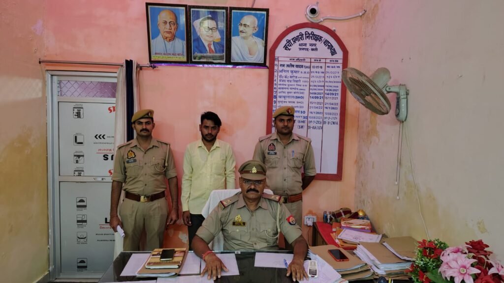 मामले में थानाध्यक्ष नगर ने बताया कि अभियुक्त राम गौण पुत्र पप्पू निवासी ग्राम हथीनास थाना कप्तानगंज बस्ती को नगर के बस्ती कलवारी मार्ग पर स्थित राजा की मूर्ति के पास से गिरफ्तार किया गया |