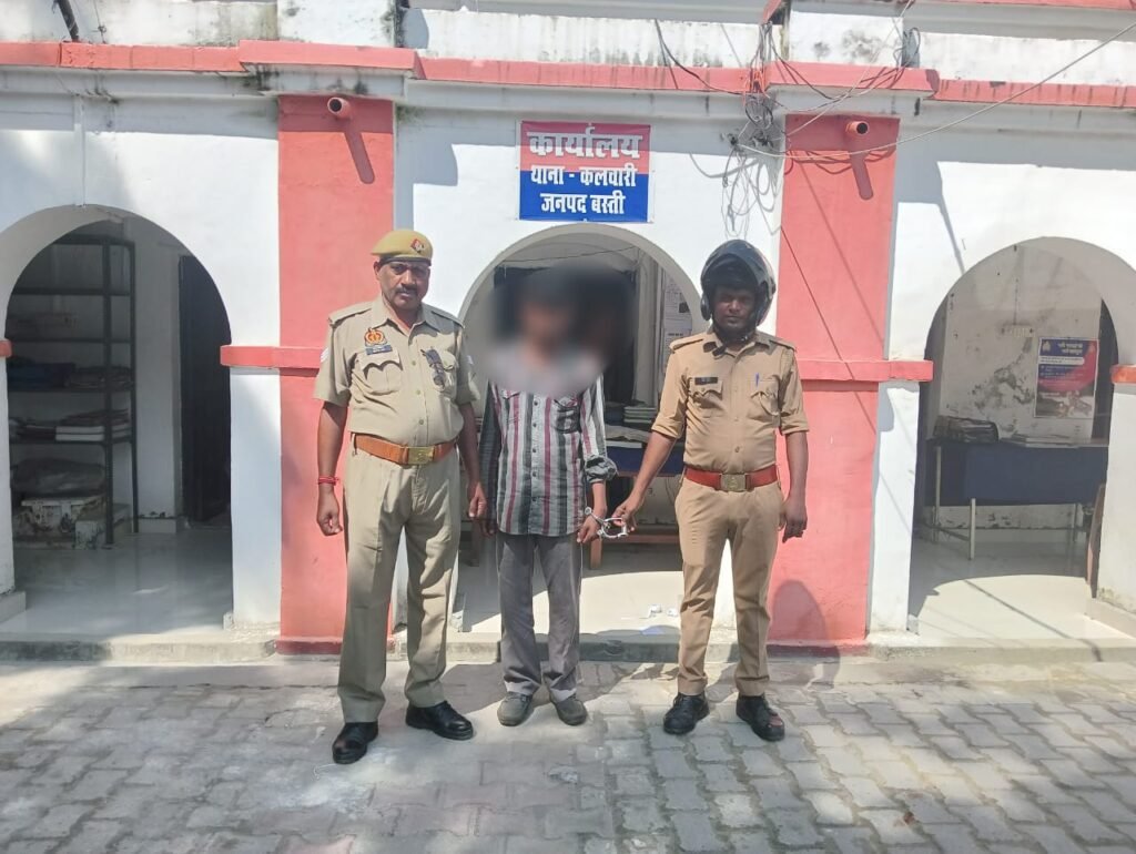थानाध्यक्ष कलवारी भानु प्रताप सिंह ने बताया कि अभियुक्त गति राम पुत्र दयाराम की उम्र लगभग 28 वर्ष है और वह गायघाट थाना कलवारी बस्ती का निवासी है | उसे कांस्टेबल उमाशंकर सिंह यादव,विनीत यादव तथा महिला कांस्टेबल शुभांगी के साथ गायघाट चौराहे से गिरफ्तार किया गया |