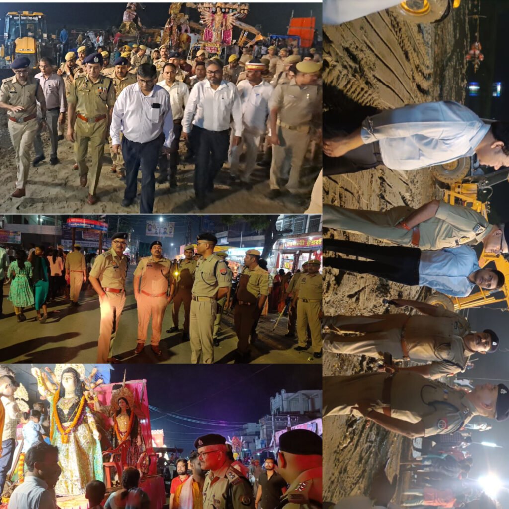 👉 दूसरी तरफ अपर जिलाधिकारी तेजपाल चौहान तथा अपर पुलिस अधीक्षक ओम प्रकाश सिंह द्वारा अनवरत दिन रात एक करके मूर्तियों के शांतिपूर्ण ढंग से विसर्जन के लिए दिन के अलावा रात में भी आकस्मिक रूप से पंडालों तथा मूर्ति विसर्जन स्थल का निरीक्षण किया जाता रहा