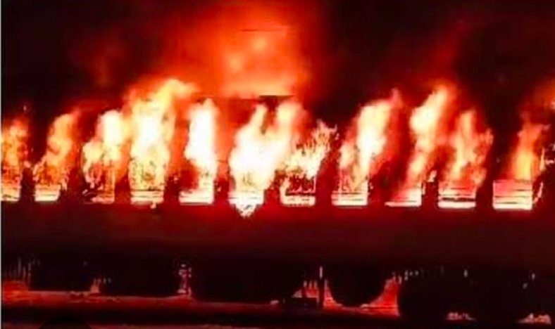 इस दौरान पुलिस अधिकारियों ने देखा कि मालगाड़ी ‘बर्निंग ट्रेन’ बन पटरी पर दौड़ रही थी।